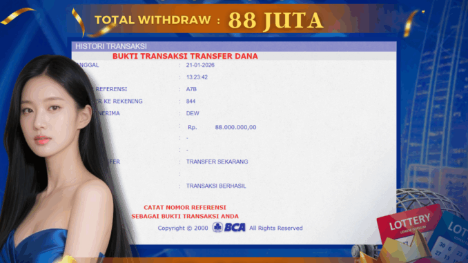 DEWATOGEL mengucapkan selamat kepada user id : DEW*** yang telah berhasil mendapatkan jackpot pada permainan TOGEL DI TOTOMACAU 4D. Kemenangan sebesar Rp 88.000.000,-. telah dibayarkan LUNAS oleh pihak dewatogel kepada pemilik user id setelah yang bersangkutan mengisi formulir withdraw. Proses pencairan dana berlangsung sangat cepat hanya dalam waktu 5-10 menit sudah berada dalam rekening pemilik user id. Bukti transfer yang dapat anda lihat adalah bukti SAH / VALID yang langsung di dapatkan melalui bukti transaksi dari Bank yang digunakan untuk pengiriman dana pada rekening pemilik user id. Terima kasih kami sampaikan kepada para pengguna setia DEWATOGEL yang telah menggunakan situs kami, sebagai Bandar Terpercaya yang pastinya membayar semua kemenangan member hingga lunas. Apakah DEWATOGEL PENIPU ? Reputasi “DEWATOGEL TERPERCAYA” sudah sangat melekat. puluhan hingga ratusan ribu pengguna setia DEWATOGEL tetap menggunakan situs terbesar dan terbaik di Indonesia ini. Hapus rasa was-was dan khawatir anda, kemenangan anda berapapun PASTI dibayarkan hingga lunas.