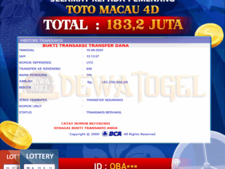 DEWATOGEL JACKPOT TOGEL DI TOTOMACAU 4D Rp 183.250.000,- LUNAS