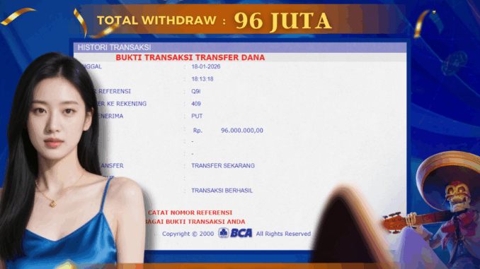 DEWATOGEL mengucapkan selamat kepada user id : PUT*** yang telah berhasil mendapatkan jackpot pada permainan SLOT DI SUPER MANIA. Kemenangan sebesar Rp 96.000.000,-. telah dibayarkan LUNAS oleh pihak dewatogel kepada pemilik user id setelah yang bersangkutan mengisi formulir withdraw. Proses pencairan dana berlangsung sangat cepat hanya dalam waktu 5-10 menit sudah berada dalam rekening pemilik user id. Bukti transfer yang dapat anda lihat adalah bukti SAH / VALID yang langsung di dapatkan melalui bukti transaksi dari Bank yang digunakan untuk pengiriman dana pada rekening pemilik user id. Terima kasih kami sampaikan kepada para pengguna setia DEWATOGEL yang telah menggunakan situs kami, sebagai Bandar Terpercaya yang pastinya membayar semua kemenangan member hingga lunas. Apakah DEWATOGEL PENIPU ? Reputasi “DEWATOGEL TERPERCAYA” sudah sangat melekat. puluhan hingga ratusan ribu pengguna setia DEWATOGEL tetap menggunakan situs terbesar dan terbaik di Indonesia ini. Hapus rasa was-was dan khawatir anda, kemenangan anda berapapun PASTI dibayarkan hingga lunas.